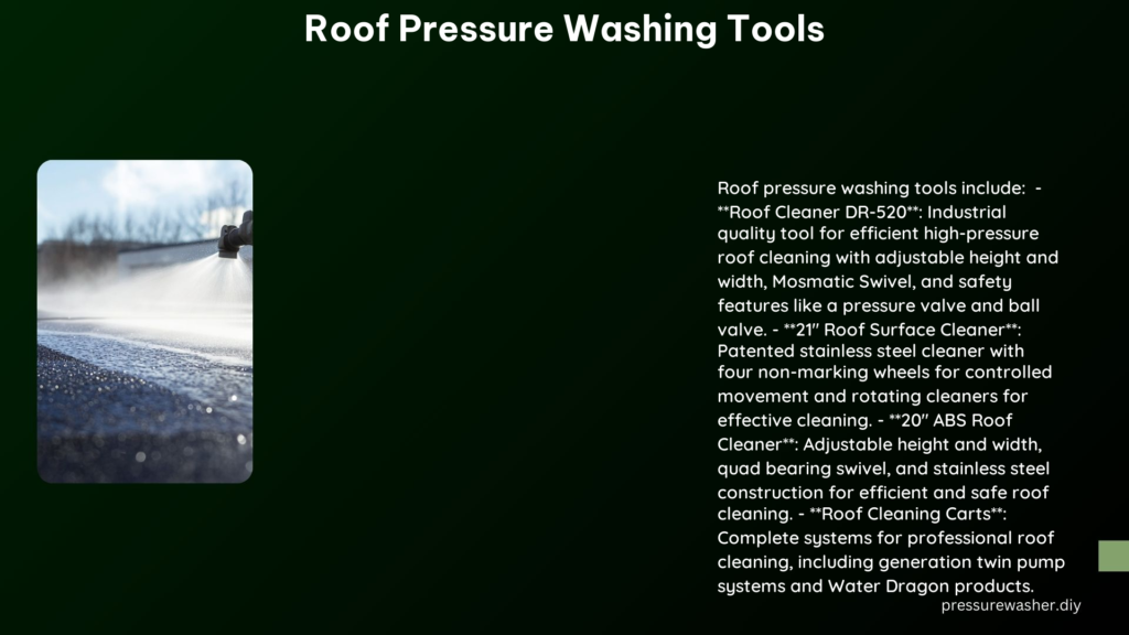 Roof pressure washing tools are specialized equipment designed to efficiently and safely clean various types ...